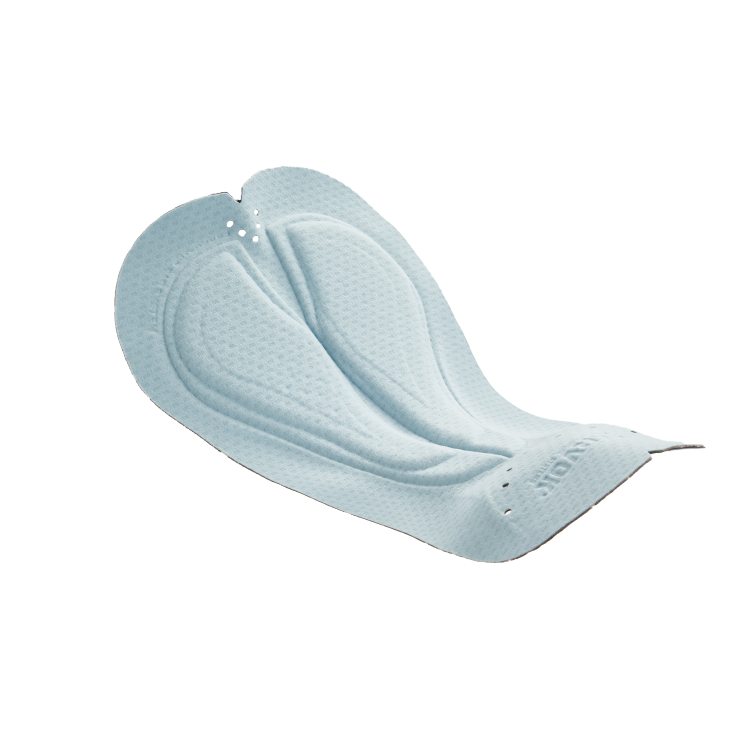 La primera capa de poliuretano elástico de 40kg/m3 permite una perfecta adaptación entre sillín y culote, manteniendo las características de elasticidad tridireccional del propio tejido.
